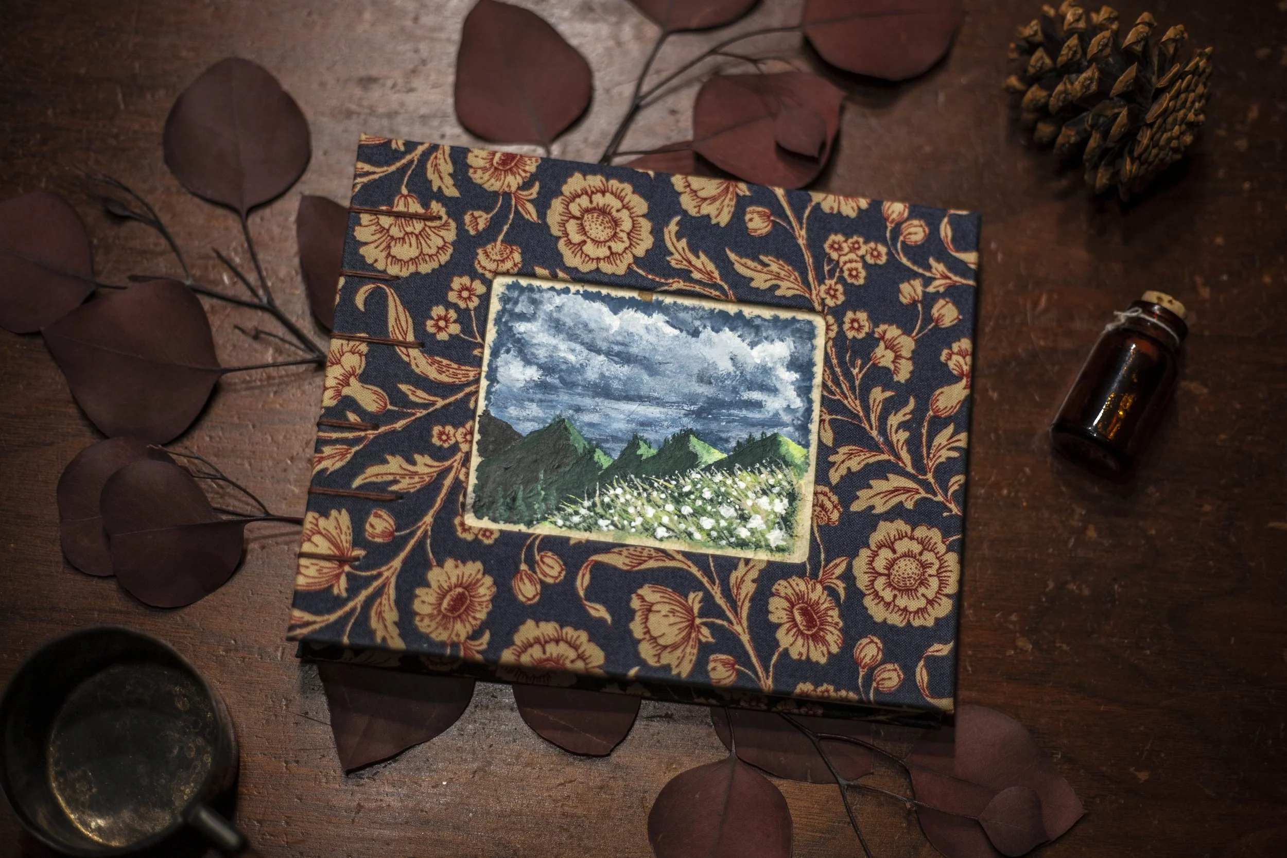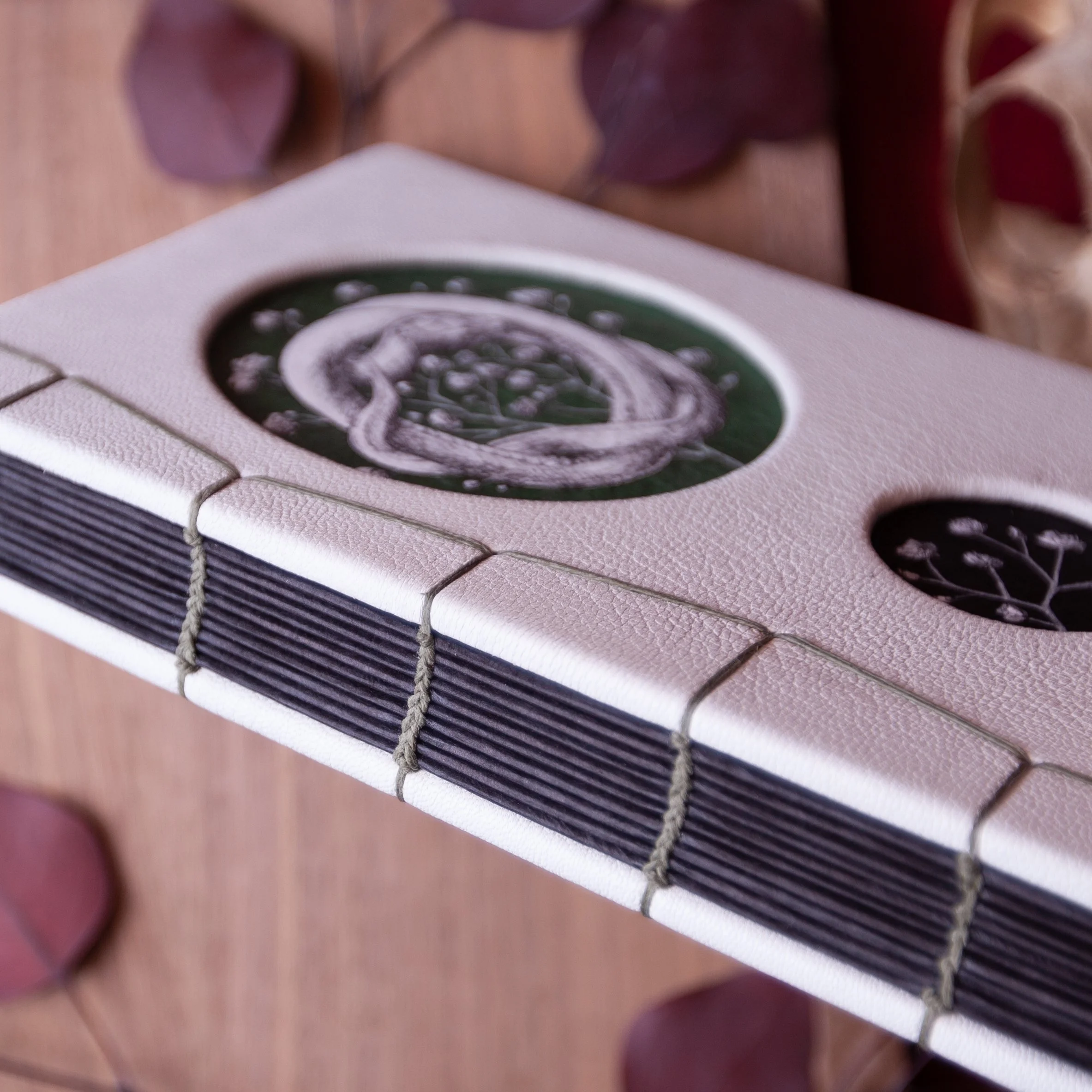 The Naturalist Collection is an illustrated Coptic bound collection and was an exploration of windows cut out of covers and what that could do to frame 2d design.